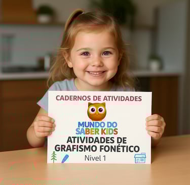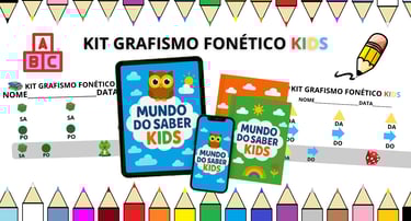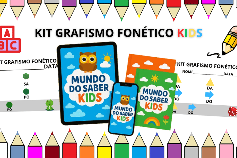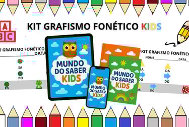 Com o Kit de Grafismo Fonético, inspirado no consagrado Método Americano de Alfabetização, seu filho aprende a ler até 5x mais rápido — de forma divertida, simples e eficaz, no conforto da sua casa!