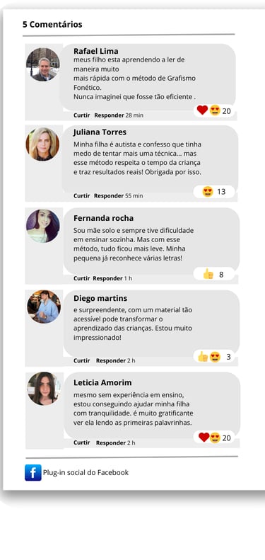 Com o Kit de Grafismo Fonético, seu filho desenvolve o cérebro para aprender a ler com leveza, no tempo dele e com resultados visíveis em poucos dias.